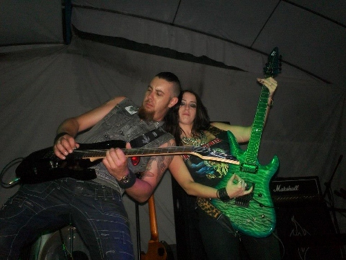 NIKKI STRINGFIELD Y BRAD JURJENS juntos en el escenario y en la vida real, ya que son pareja y trabajan en PEAVY HOLLYWOOD, NIKKI una bella chica de RED OAK,TEXAS se muda a L.A. para meterse de lleno a la música, con una licenciatura en radio, televisión y filmes, combina todo esto con el dibujo. Mientras que BRAD se encarga de PEAVEY HOLLYWOOD, también es un gran músico, así que que unen su talento y lo integran en un dueto de guitarras en el que expresan sus gustos personales, composiciones y su profundo amor por la música. Durante el evento cambiaron en algunas ocasiones de guitarra, regalaron púas y al tocar THE TROOPER de la legendaria IRON MAIDEN, subió EDWIN vocalista de SACHIEL quien le dio su toque personal y la ovación no se dejó esperar, la gente se desgarró la garganta de emoción al escuchar algo de lo más querido de la banda. Al término de estos dos grandes, siguió el after party, en el que muchos seguidores compartieron momentos únicos con los guitarristas, convivieron y de allí, por qué no, surja una linda amistad. Se abre una fecha más en Guadalajara y se presentan al otro día en un concierto de agradecimiento por el cariño recibido para sus fieles fanáticos, comparten escenario de nuevo BESTIA y SACHIEL, y NIKKI, BRAD y DICK presentan un setlist diferente, entregando alma y corazón, con un público feliz por volver a ver a sus artistas favoritos, se repite la adrenalina, esta vez tocan WASTED YEARS interpretada de nuevo por EDWIN. Llega el momento de decir adiós, se van contentos por el cariño que México cada que vienen les brinda, y esperan que su regreso sea muy pronto.