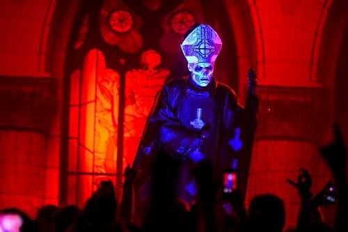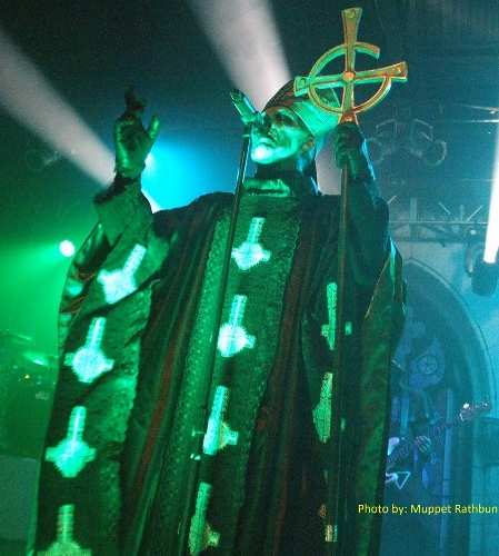 GHOST es una banda sueca de doom metal formada en Linköping en 2008. La banda se caracteriza porque 5 de sus miembros (nameless ghouls) utilizan túnicas negras con capuchas, mientras que el vocalista (Papa Emeritus II) se viste como sacerdote católico y maquillaje de esqueleto, sus letras anticristianas satánicas, además de ocultar su verdadera identidad, hace que tengan tantos adeptos alrededor del mundo.