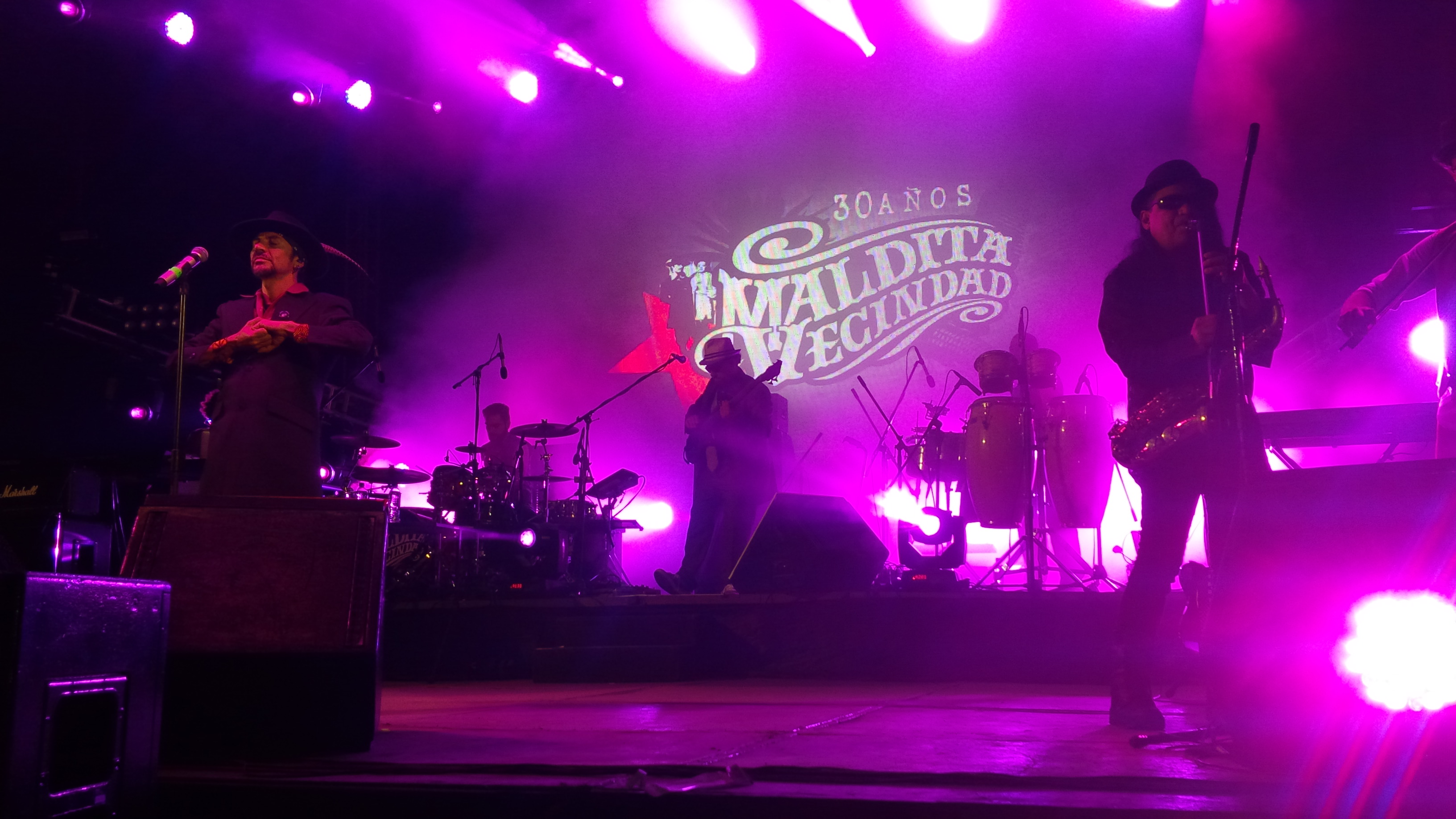 Por su parte, LA MALDITA VECINDAD solo se presentaron 2 de sus integrantes Pato y Aldo (guitarrista y bajista, respectivamente). Nos comentaron un poco sobre lo que ellos pensaban a cerca del tema "Ayotzinapa" y que era una pena que ahora el hablar de México, siempre sea cuestión de ese tema y que no es la primera vez que el gobierno actúe de tal forma y que el pueblo reaccione como ahora, aunque claro, en el 94 fue un poco más grande el movimiento de "Los Zapatistas", y que México sabrá salir adelante ante estas cosas y que esperaban que todo el público se llevará una buena experiencia esa noche , e hicieron mención a cerca de sus 2 nuevos miembros cubanos, uno en teclado y el otro en violín.