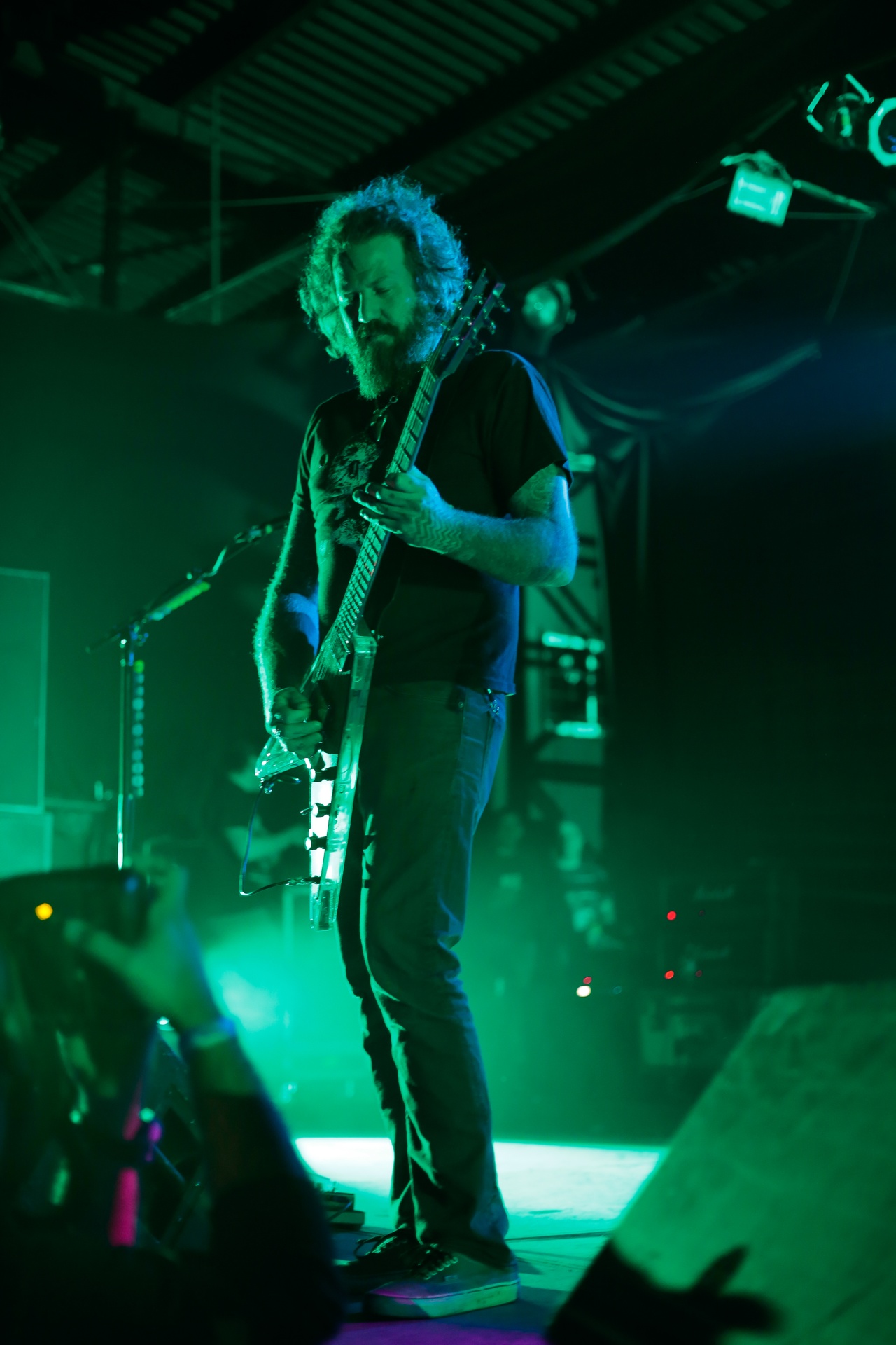 La banda de metal progresivo Mastodon está de regreso en Guadalajara en la gira promocional de su más reciente producción musical One More ´Round the Sun, Teatro Estudio Cavaret es el foro que recibe al cuarteto estadounidense, 13 de marzo es la fecha que marca la historia de la escena metalera tapatía, a las 9:26 pm salen a apoderarse del escenario y adueñarse de la atención de los presentes, ya que más de 1000 personas se dieron cita para disfrutar de un concierto memorable, interpretaciones majestuosas, la maestría de cada uno de ellos se hace presente, fuerza, explosividad, letras intensas, innovación constante es lo que caracteriza a la banda, además de compartir las labores vocales. Troy Sanders al salir saluda diciendo en español, muchas gracias Guadalajara¡ comienzan con Tread Lightly, siguen con la canción que nombre al disco, Once More ´Round the Sun, Blasteroid, Oblivion, The Motherload, para este punto del concierto tanto la gente como la banda estaban en el clímax, suena High Road, Divinations, Black Tongue, Ember City, Bren Hinds pregunta, Guadalajara cómo estamos? Para despedirse, luego de una breve pausa regresan, la audiencia completamente enloquecida canta desenfrenadamente al escuchar Megalodon, llega la aclamada Crystal Skull (canción que habla de un hombre que busca la calavera de cristal, la que se encuentra en la cima de la montaña sangrienta, tema que se desprende del álbum Blood Mountain).