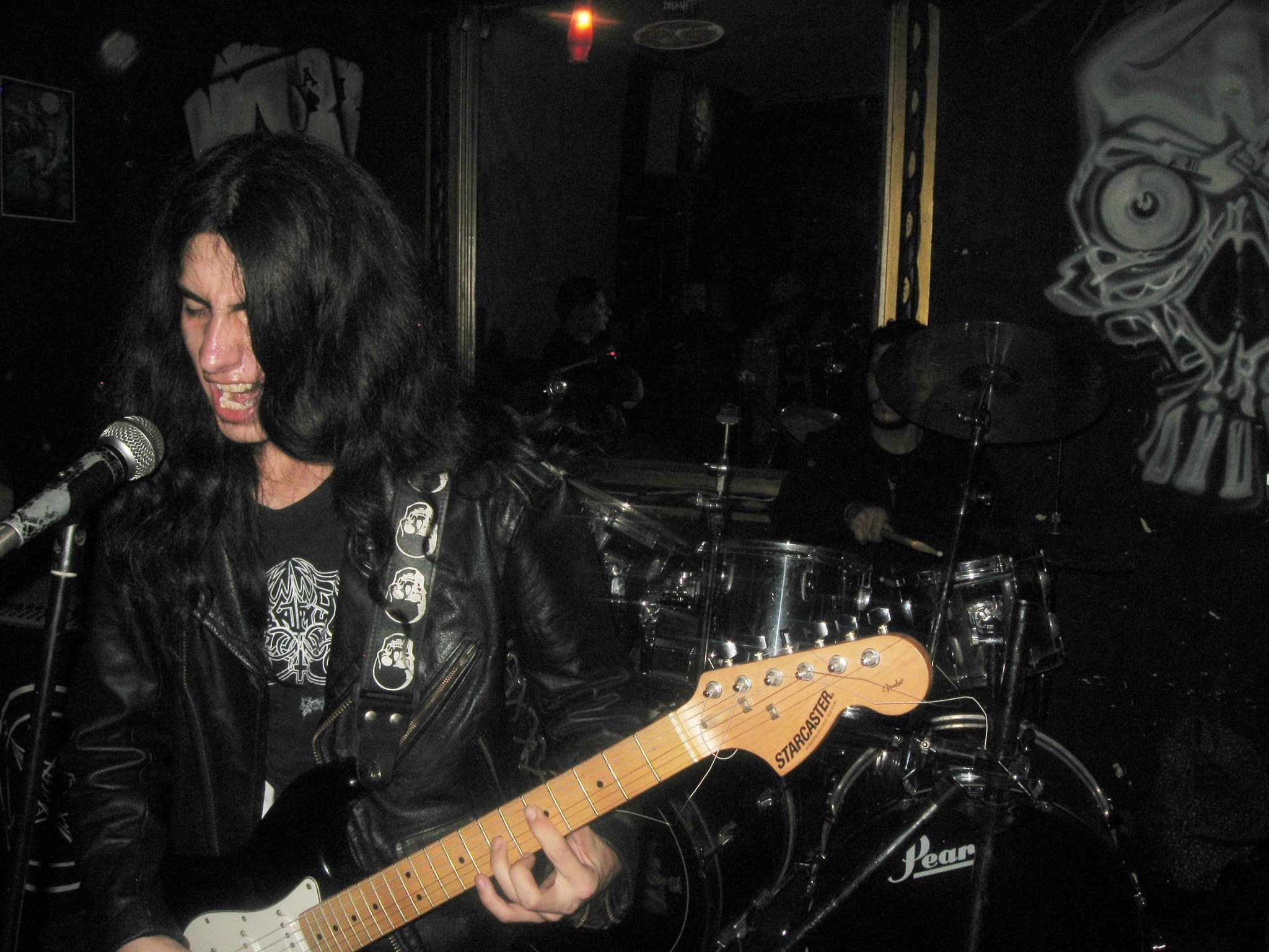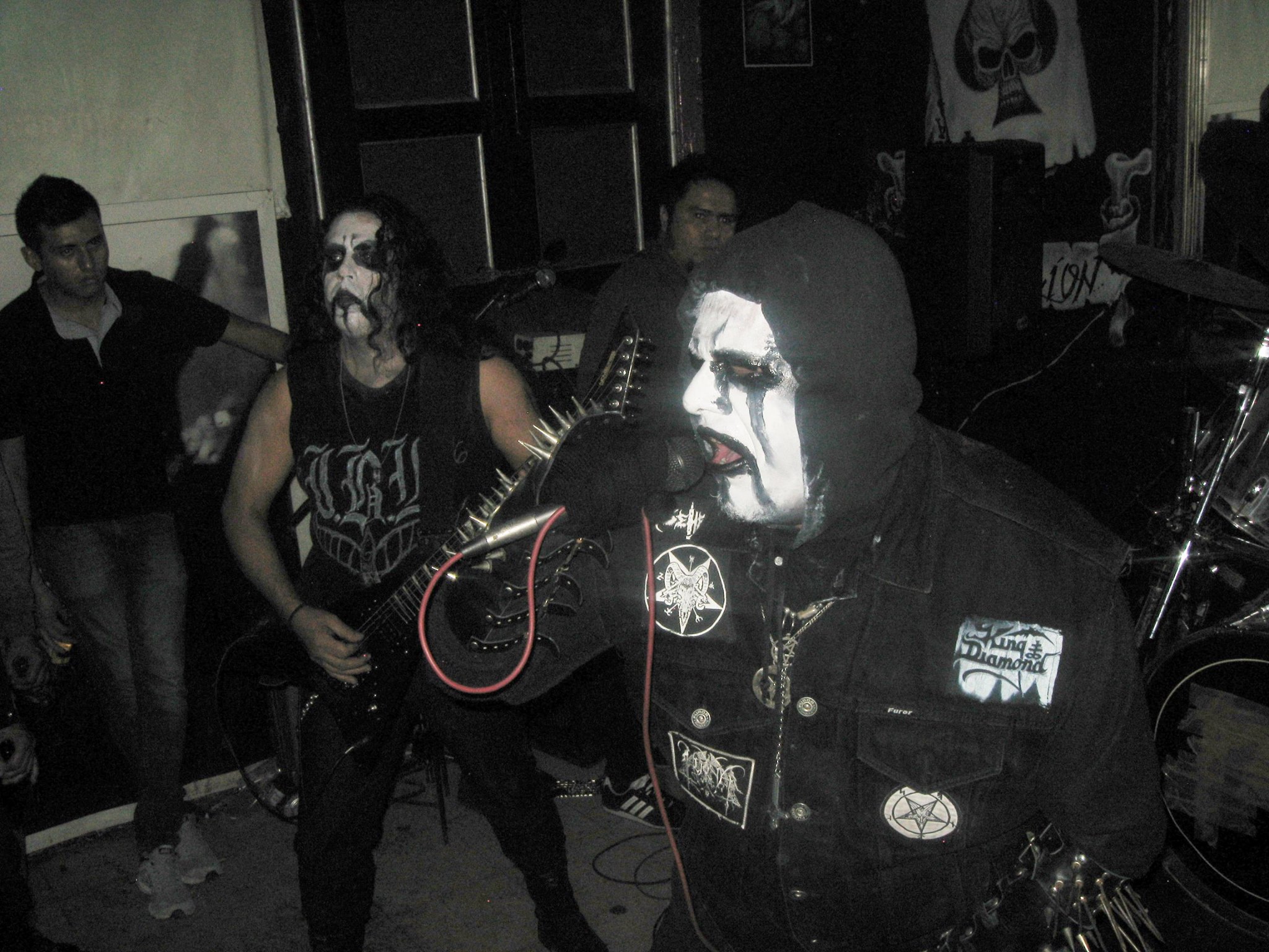 No pasarían más de 10 minutos cuando los encapuchados “Under The Sign” comenzaran con su metralla siendo ésta la primera banda de la I.B.L. en tocar, con Eduardo Mandujano en la batería, y los monjes infernales Hatah y el Brujo en guitarra y en voz respectivamente. Con una propuesta violenta y con todas las ganas éste grupo tocó 40 minutos de lo que denominan “black metal, denso, frío y primitivo” dejando en claro que ninguna pose era bienvenida al evento. Terminado el acto, un brujo con cara de “esto recién comienza” se acerca a nosotros para brindarnos la foto junto con un servidor.