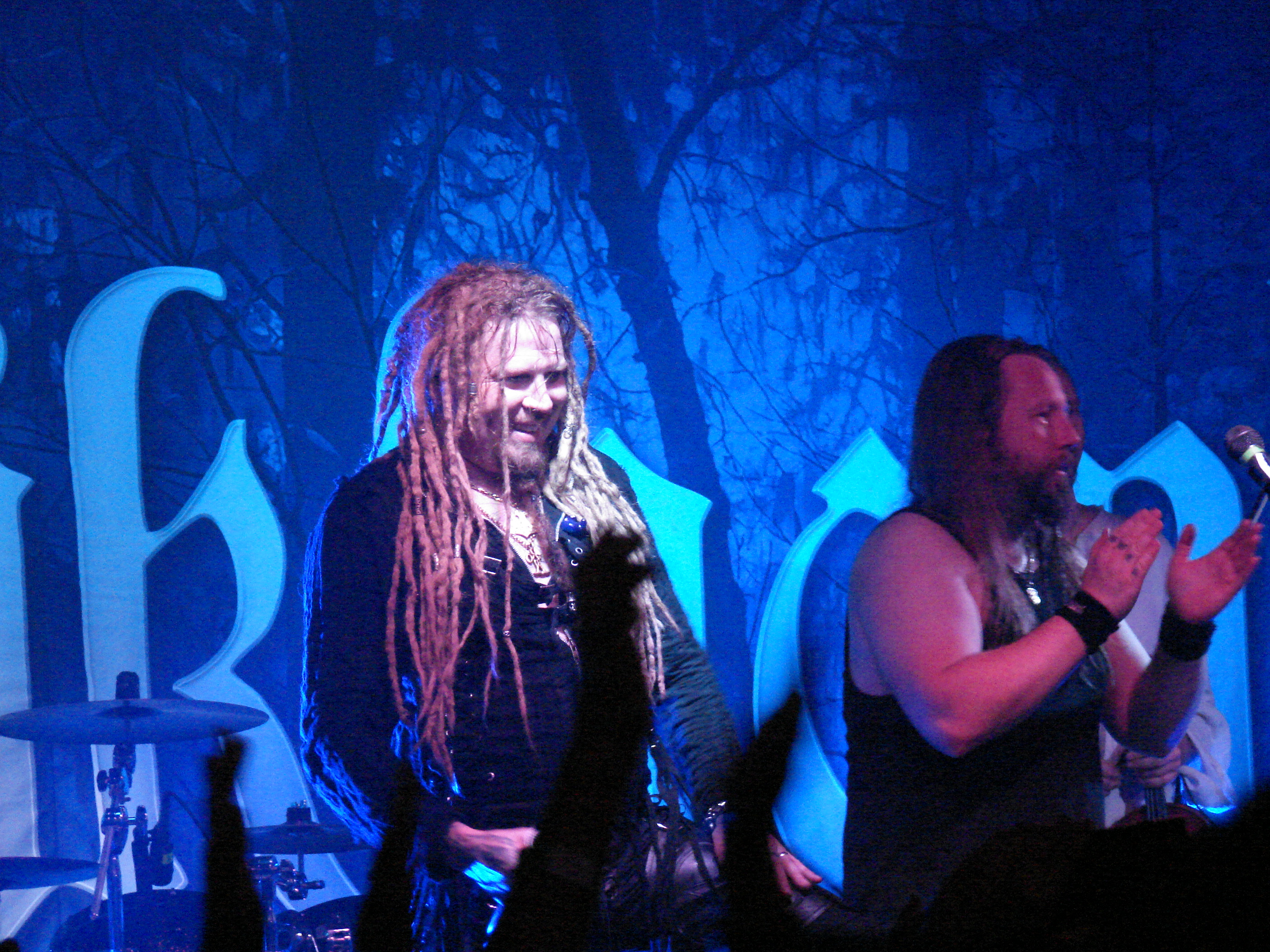 Sería exactamente media hora después ya que en éste interín se hicieron pruebas de sonido y cuando el reloj marcaba las 9.57 cuando los finlandeses Korpiklaani comenzaban uno a uno a pisar escenario iniciando con “Viinamäen Mies” seguida de “Journey Man” convirtiendo el foro en una fiesta nórdica. “Pilli On Pajusta Tehty” continuaba ésta fiesta donde no faltó el slam, el clásico bailecito folk, los saltos, la ovación que dejaba en claro que Guadalajara estaba presente. “Lempo” y “Sahti” fueron las siguientes, el violín y el acordeón no paraban de transportarnos a antiguas fiestas paganas que ésta gran banda reivindica en su música y en su presencia.